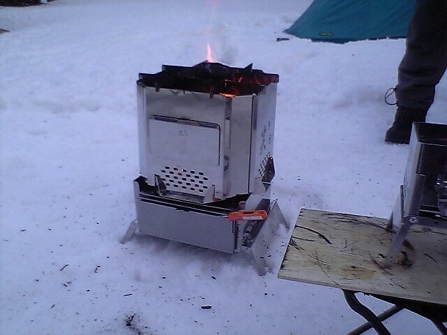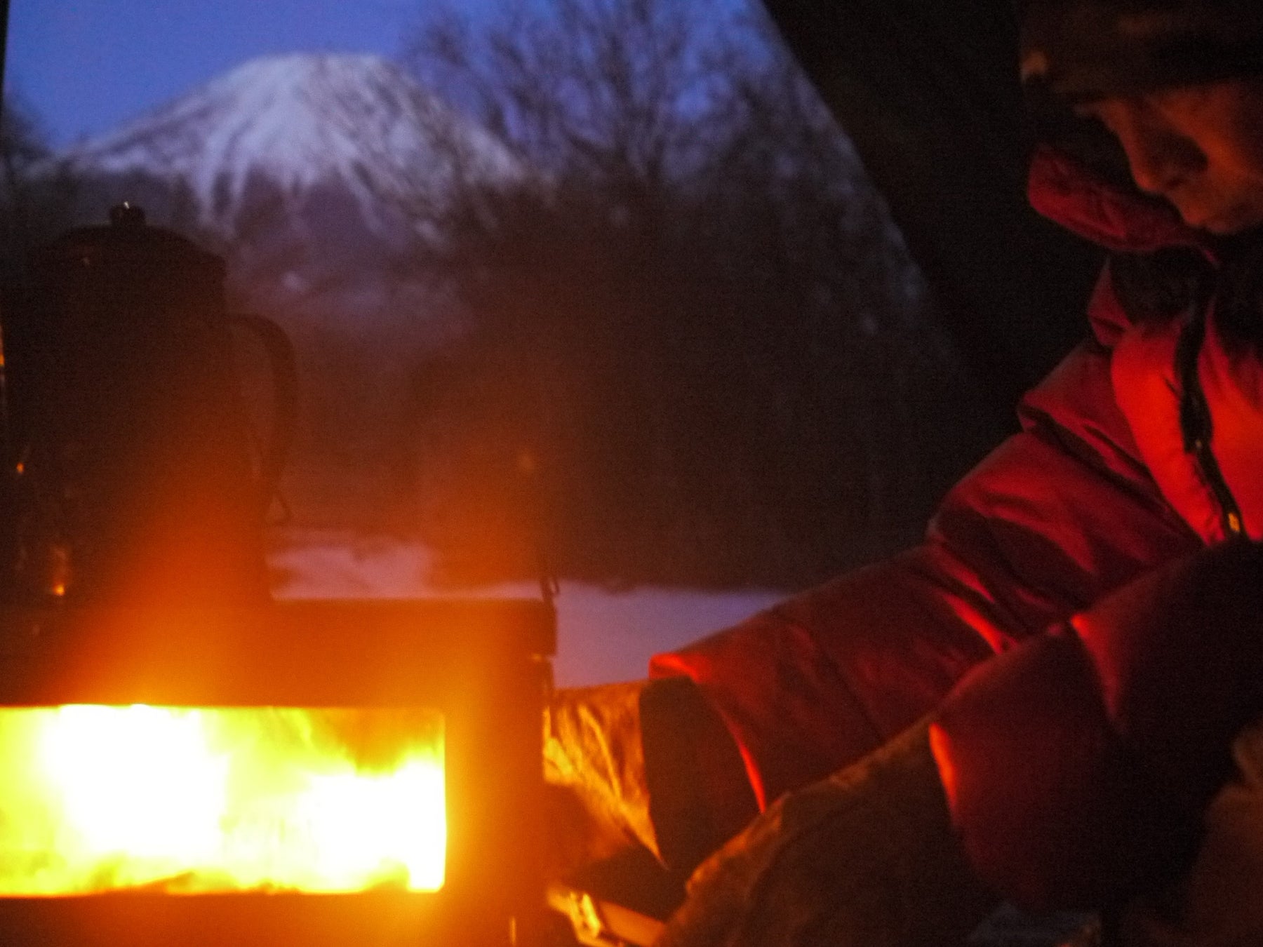 折りたたみ式の携帯式焚火台にも、焚火の炎を楽しむ醍醐味を。薪をくべると浮かび上がるシルエット。2009年4月発売のB-6君より取り入れてきました。画像はちび火君2008年クリスマス仕様です。