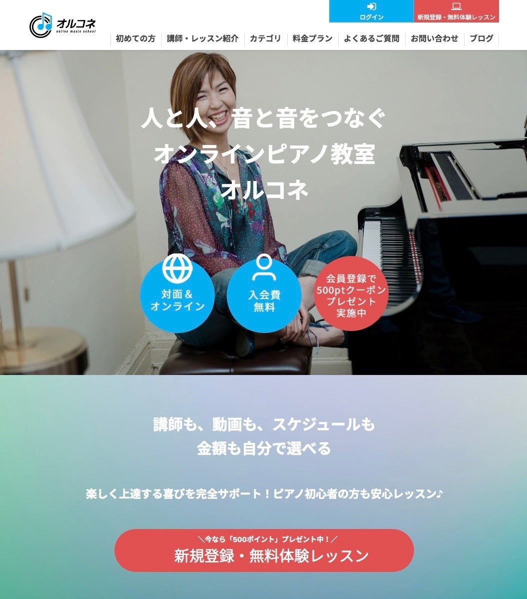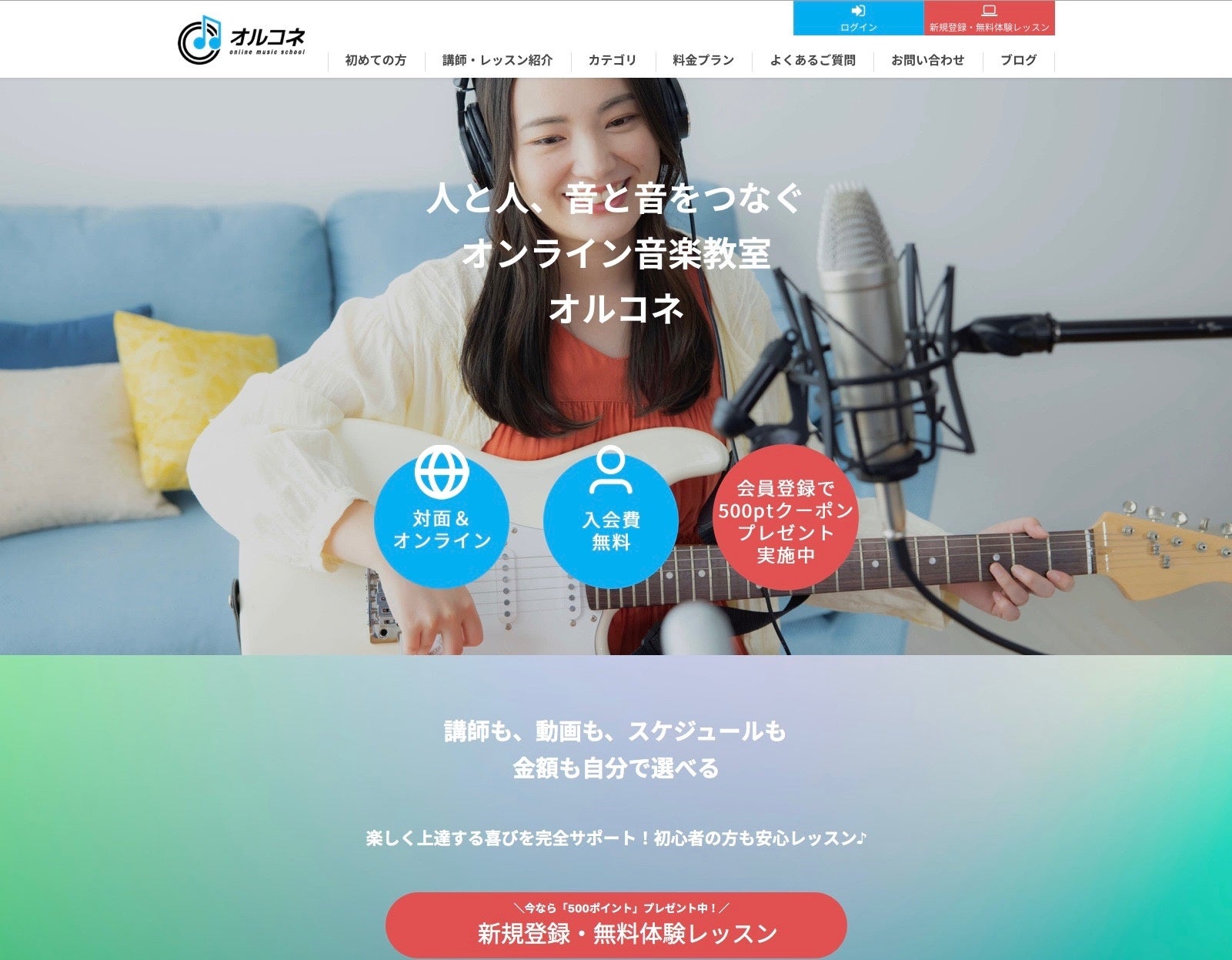 オンライン音楽教室「オルコネ」トップページよりご登録ください。