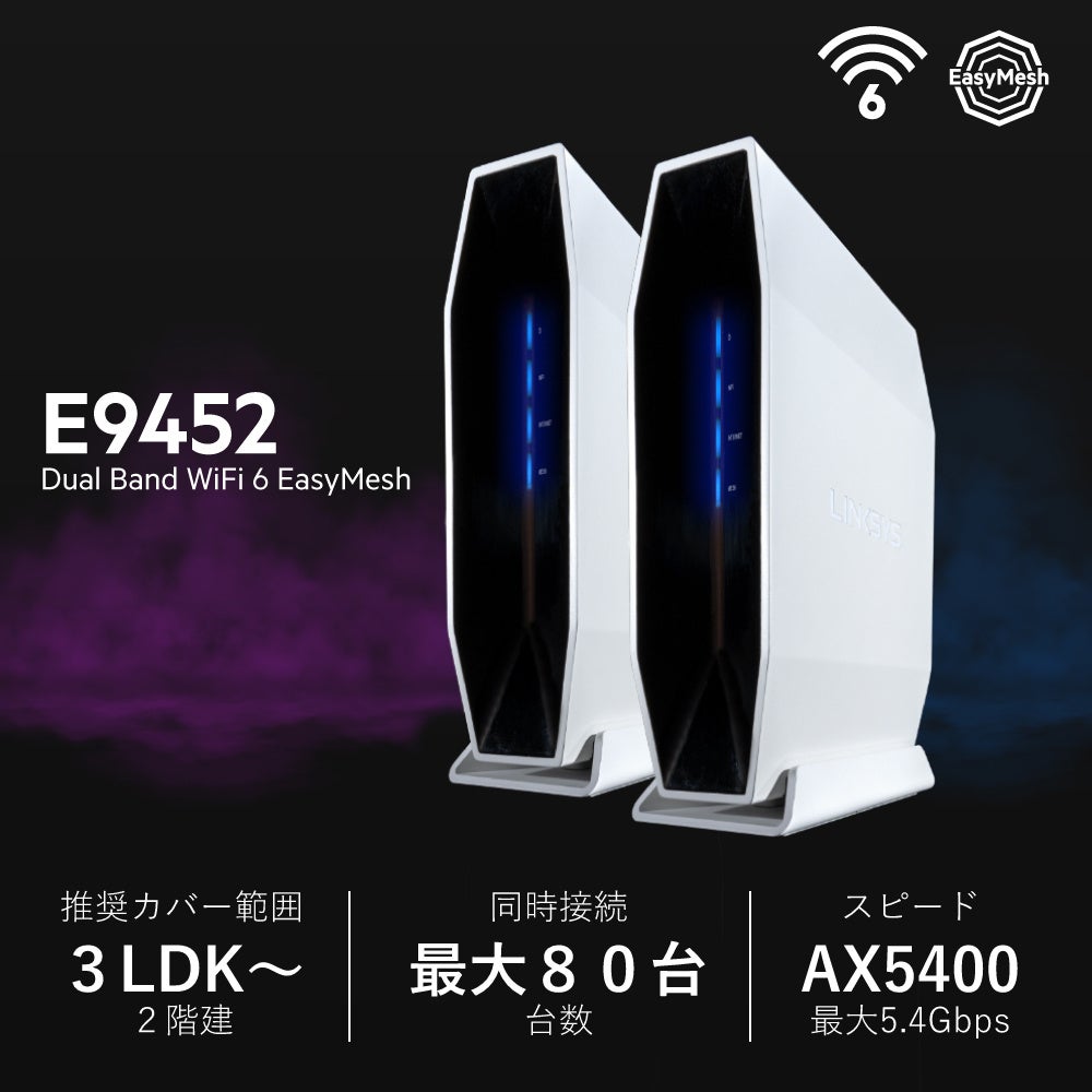 【Linksys】WiFi 6 EasyMesh対応ルーター E9452 アマゾン限定バンドルパック新発売!記念5000円引きクーポン配布中!~5/25迄