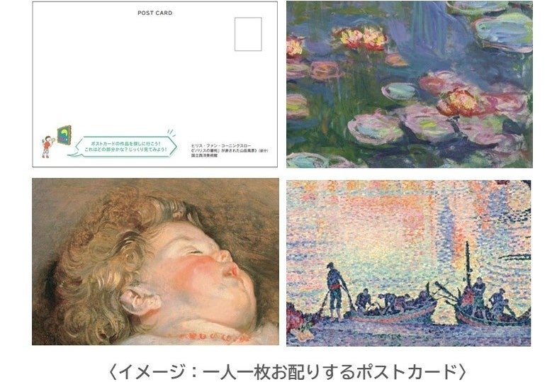 モネやルノワールなど、教科書で一度は目にしたことのある西洋絵画の名作の数々が見られる常設展では「この作品をさがしに行こう!」企画を実施。作品の一部を切り取ったポストカードを手がかりに、どの作品のどの部分か展示室内を探す中で、お気に入りの作品も見つかるかも?作品の細部に注目してゲーム感覚でアート鑑賞を楽しめます。