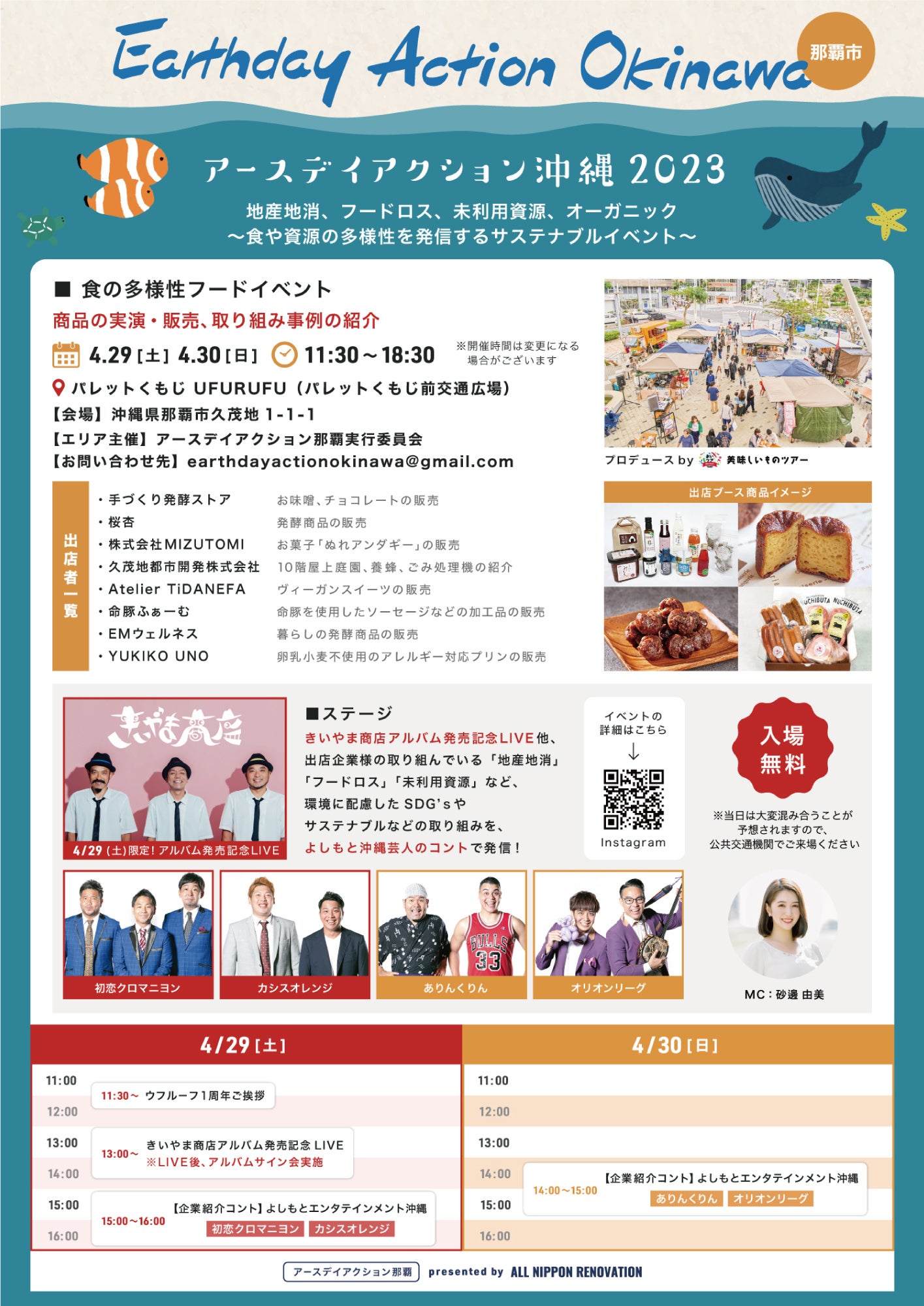 【詳細】きいやま商店アルバム発売記念LIVE他、出店企業様の取り組んでいる「地産地消」「フードロス」「未利用資源」など、環境に配慮したSDG’sやサステナブルなどの取り組みを、よしもと沖縄芸人のコントで発信します!