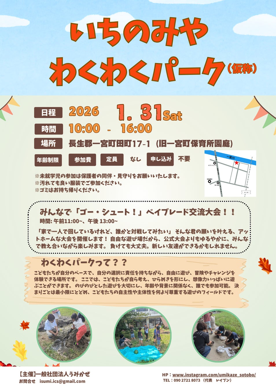 第一期生募集 説明会の案内 2026年1月31日(土)、2月14日(土)、3月14日(土)13:00〜。わくわくパークも当日開催予定。