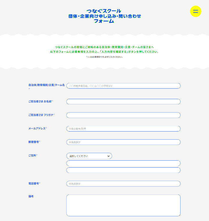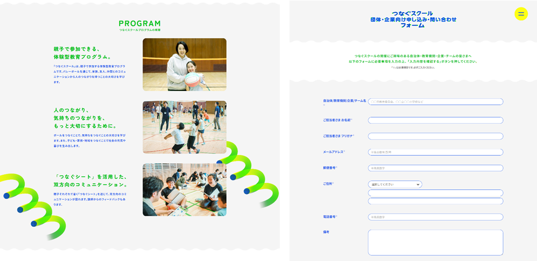 プログラムの内容や、全国での活動実績などを紹介するほか、実施を希望される方向けの申込フォームを用意しています。