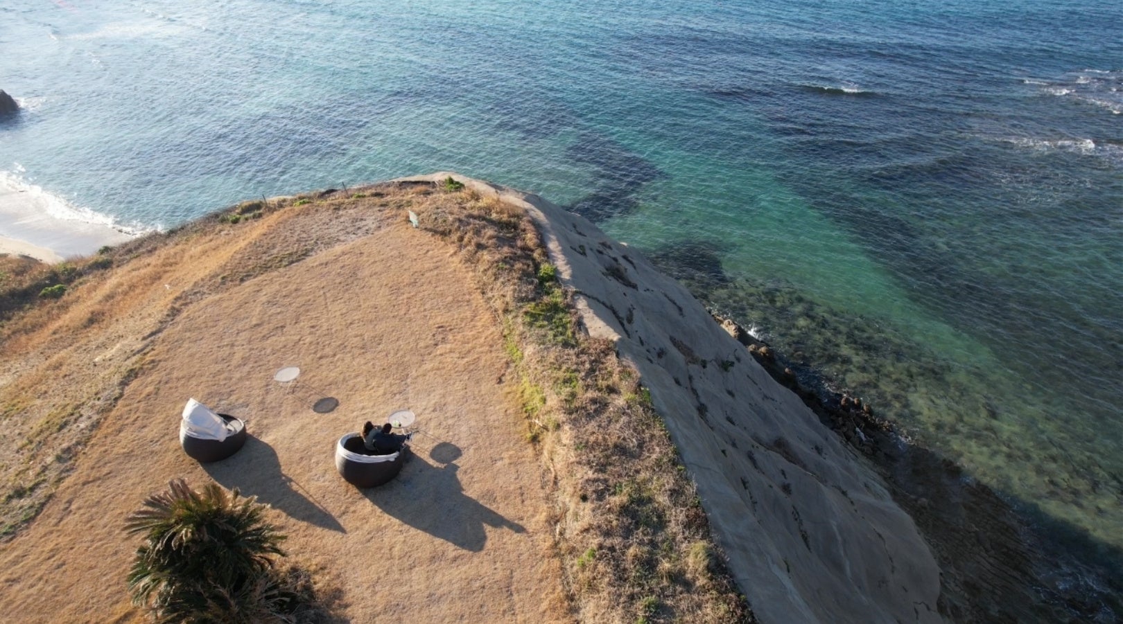 登録講習機関としてのサービス開始に先駆けて、この春より「ドローンによる記念撮影」が付いた宿泊プランが販売開始されました。撮影時間は15〜20分程度で、写真と動画データはそれぞれ3種類をその日のうちに受け取れます。スマホ撮影では収まらない雄大な自然と輝くビーチを背景に大切な人との思い出の一コマを空撮映像で残すことができます。