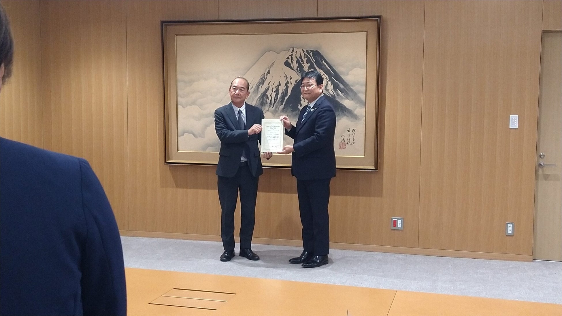 認定証授与式 千葉市長 神谷様と弊社代表 田上