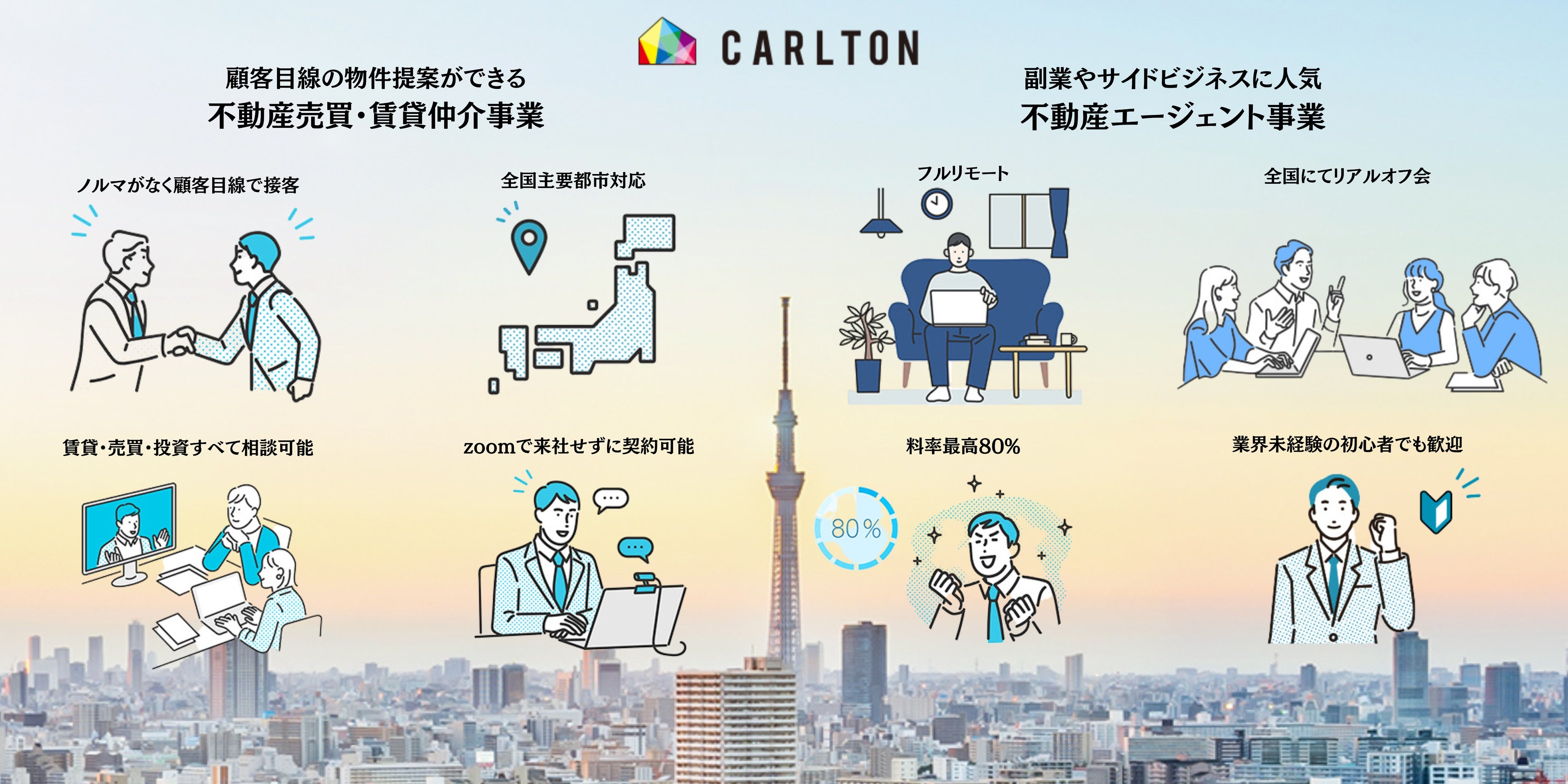 カールトンは「不動産業界に透明性を。」というミッションを掲げて、不動産仲介業、旅館業・ホテルの企画、運営を営んでおります。このミッションは、当社代表自身が引越しや物件探しの際に騙された経験から生まれたものです。騙されて悔しい経験をしたからこそ「周囲の大切な人に、不動産取引を通じて不幸になる人をゼロにする」ことを目標に、3年前に不動産事業を開始いたしました。