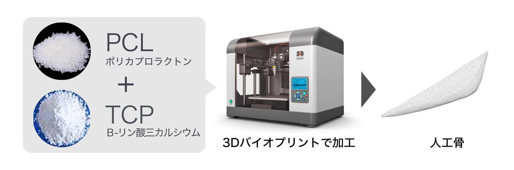 そこでザ・プラス美容外科では2024年、韓国に拠点を置く、3Dバイオプリンティング技術で再建医療に貢献する企業と提携し、「自家骨に置換される3Dバイオプリンティング人工骨(PCL/β-TCP)」を日本で初めて導入いたしました。