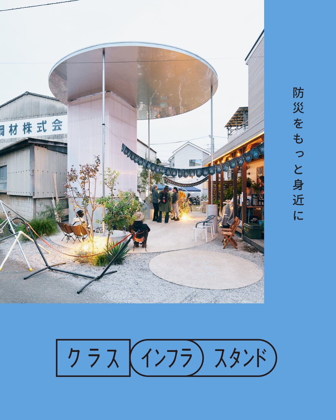 公衆トイレを中心に地域とつながる空間「インフラスタンド」を舞台に、民間発で行う取組みが、地域の防災力向上や共助のモデルとなることを目指しています。