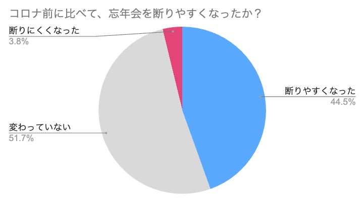 忘年会を断りやすくなったと感じる人は44.5%でも...