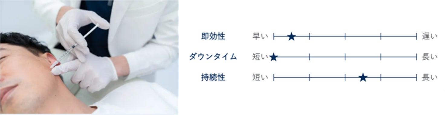 ボトックス注射は、わきに注射を打つことで発汗量を抑える治療方法です。皮膚を切開する剪除法や、ニオイ改善としては効果が得られにくいミラドライに比べ、ダウンタイム・施術時間の短いため初めてニオイ改善治療を行う方にオススメ。当院はドクターによる一人一人のカウンセリングお時間をしっかり確保しているため初めての方にも安心して治療して頂ける環境も提供しております。