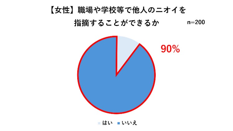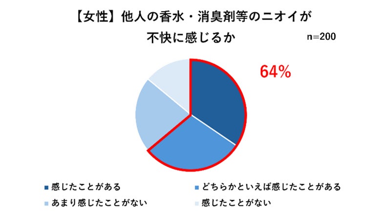 しかし、女性に消臭剤・香水がくさいと感じた経験の有無を調査したところ64%の方が不快に感じており、90%が職場等での指摘はできないと回答。