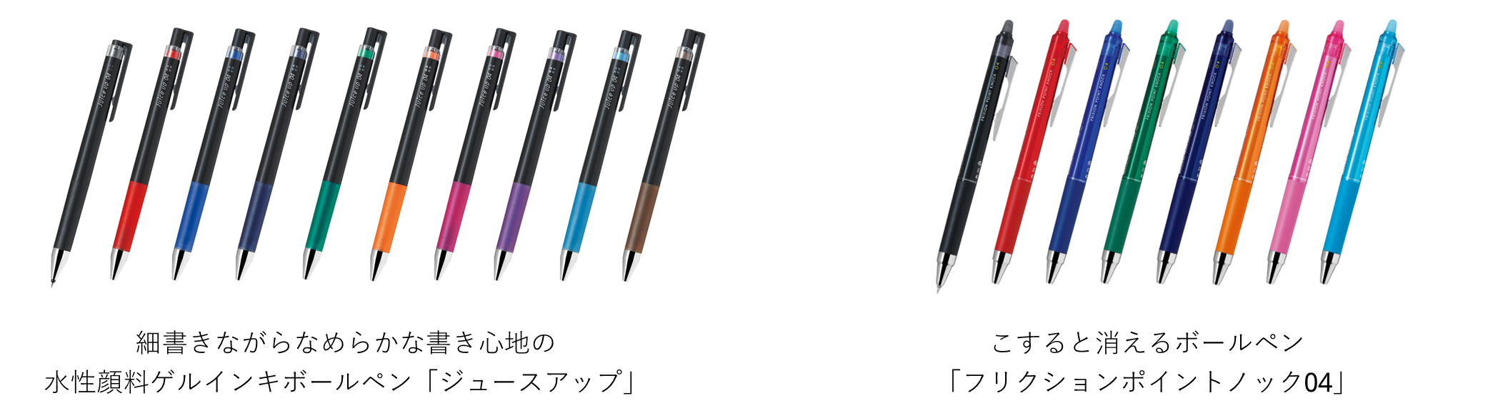今回のプロモーション企画は、独自開発したペン先「シナジーチップ」を採用している鮮やかな発色とにじまずくっきりとした筆跡の水性顔料ゲルインキボールペン『ジュースアップ』と、摩擦熱で筆跡を消去できる筆記具『フリクションポイントノック04』の2アイテムで実施します。細書きながらもなめらかな筆記が特徴の「シナジーチップ」を採用したペンを使用することで、自分の思い通りに自分らしい字を書くことができるため、書き癖もその人の個性として感じていただけるような、楽しめるコンテンツとしました。