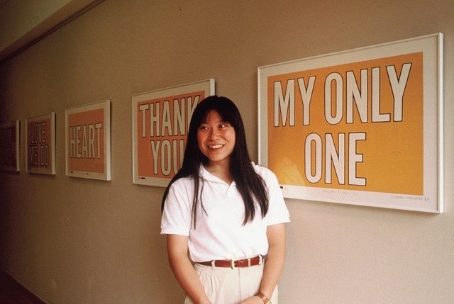 1963年京都生まれ。1985年京都芸術短期大学(現京都芸術大学)ビジュアルデザイン専攻科修了。1988年よりことばや文字をモチーフに作品を制作。横浜トリエンナーレ2001、豊田市美術館、水戸芸術館、東京都現代美術館等で作品発表する一方で、デパートの外壁工事仮囲いや、横浜のスケートリンクに文字を描くなど、屋外展示も多数。