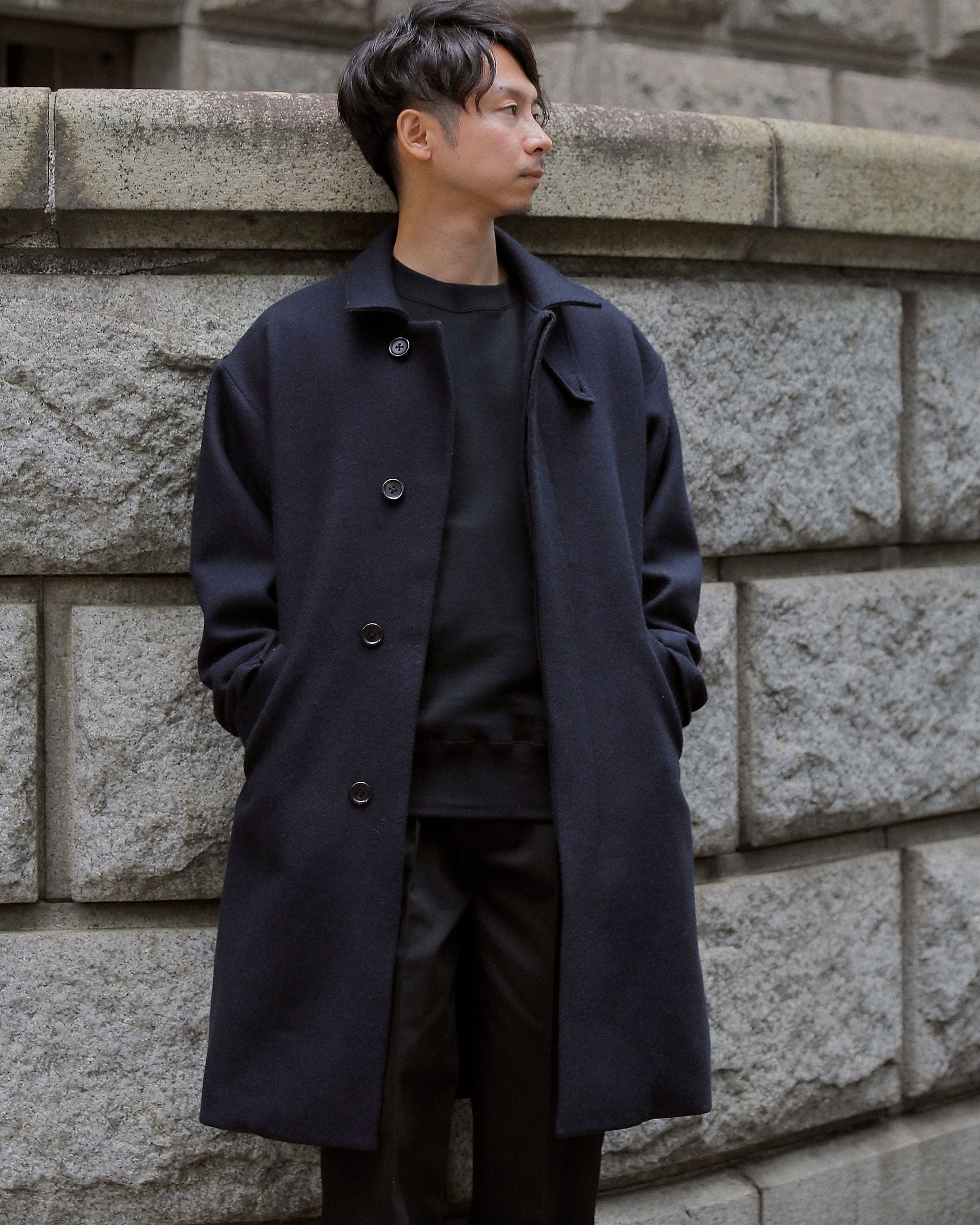 160cm男性が避けがちなロングコートをあえて企画制作。小柄でもかっこよく、スタイリッシュに見えるデザインに仕上げました。見た目の重厚さからは想像がつかない軽さを感じていただけると思いますので、ぜひ会場で試着してみてください。