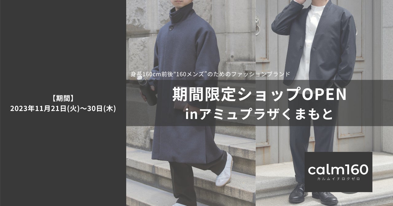 身長160cm男性のためのファッションブランド「calm160」アミュプラザくまもとで10日間限定ショップをオープン