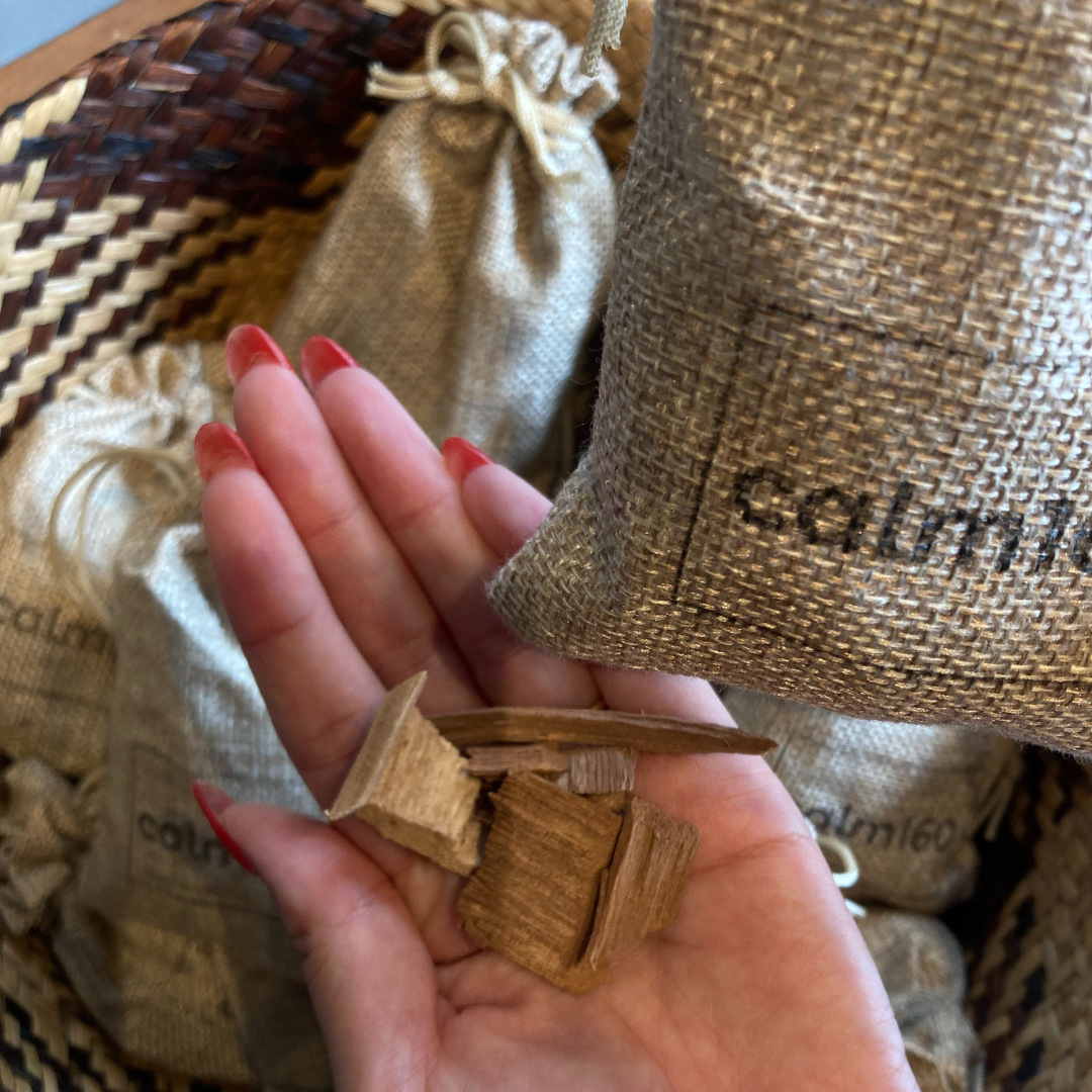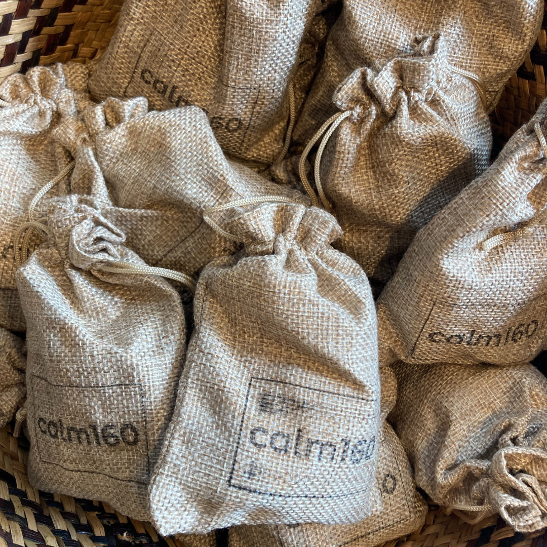 ショップにご来場のうえ、calm160インスタグラムと公式LINEに登録いただいた方限定で、オリジナルサシェをプレゼントいたします。中身は宮崎県日向市で採れた天然素材100%のクスノキのチップで、袋のままクローゼットやシューズボックスに入れておくことで、天然の防虫・消臭剤としてご利用いただけます。
