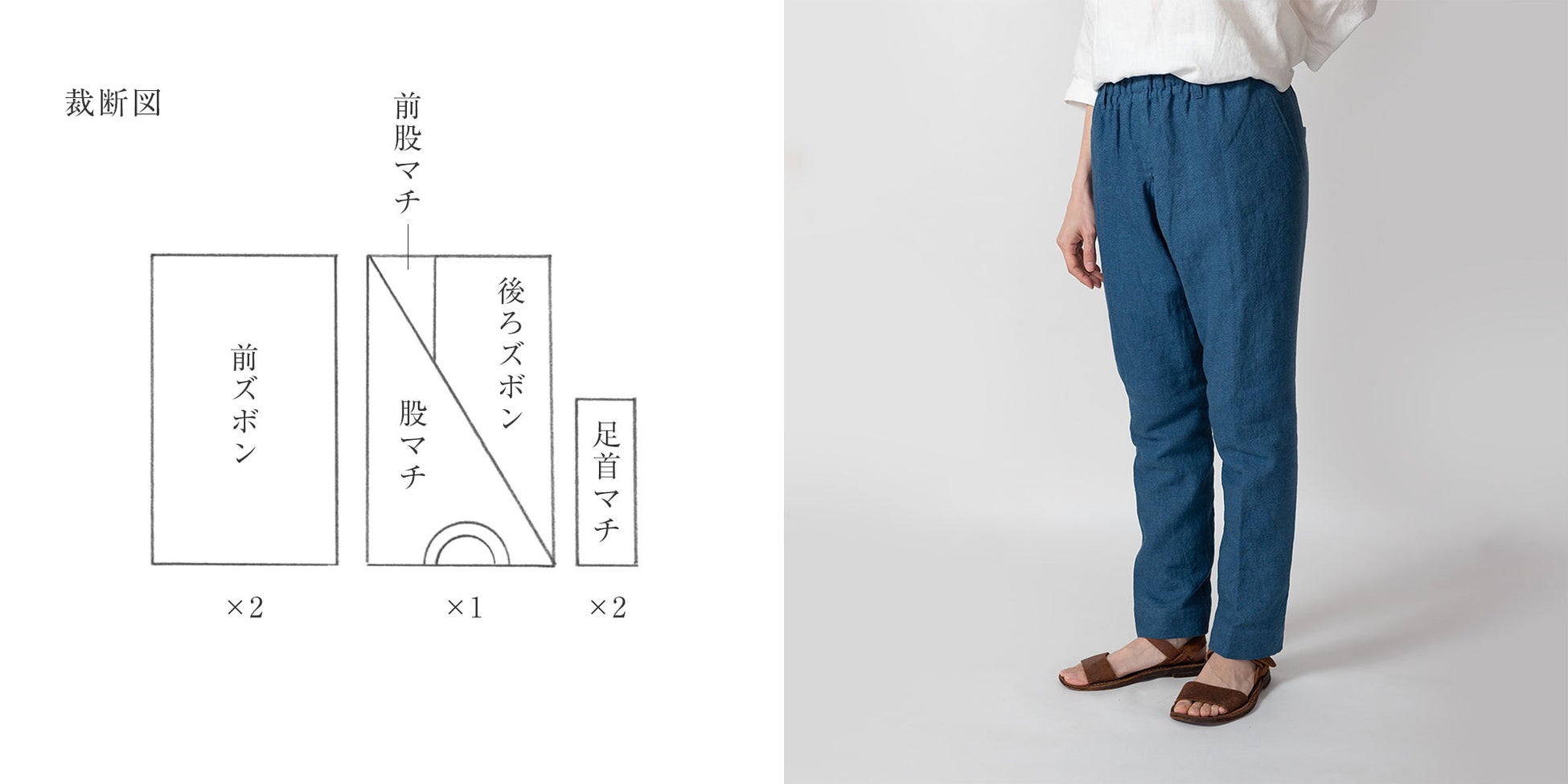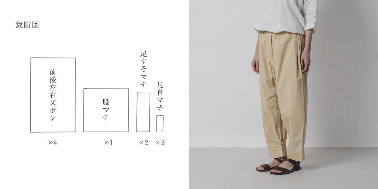無駄のない直線裁断の美しいパターンが伝わる裁断図もギャラリーで展示いただいています。
