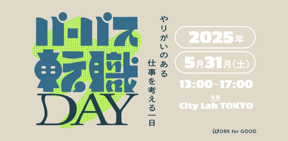 「働く」で社会を変える求人サイト「WORK for GOOD」(運営:NPO法人グリーンズ 本社:東京都千代田区 共同代表:鈴木菜央、植原正太郎)は「パーパス」を軸にした転職を提案する「パーパス転職DAY〜やりがいのある仕事を考える一日〜」を5/31に東京で開催いたします。