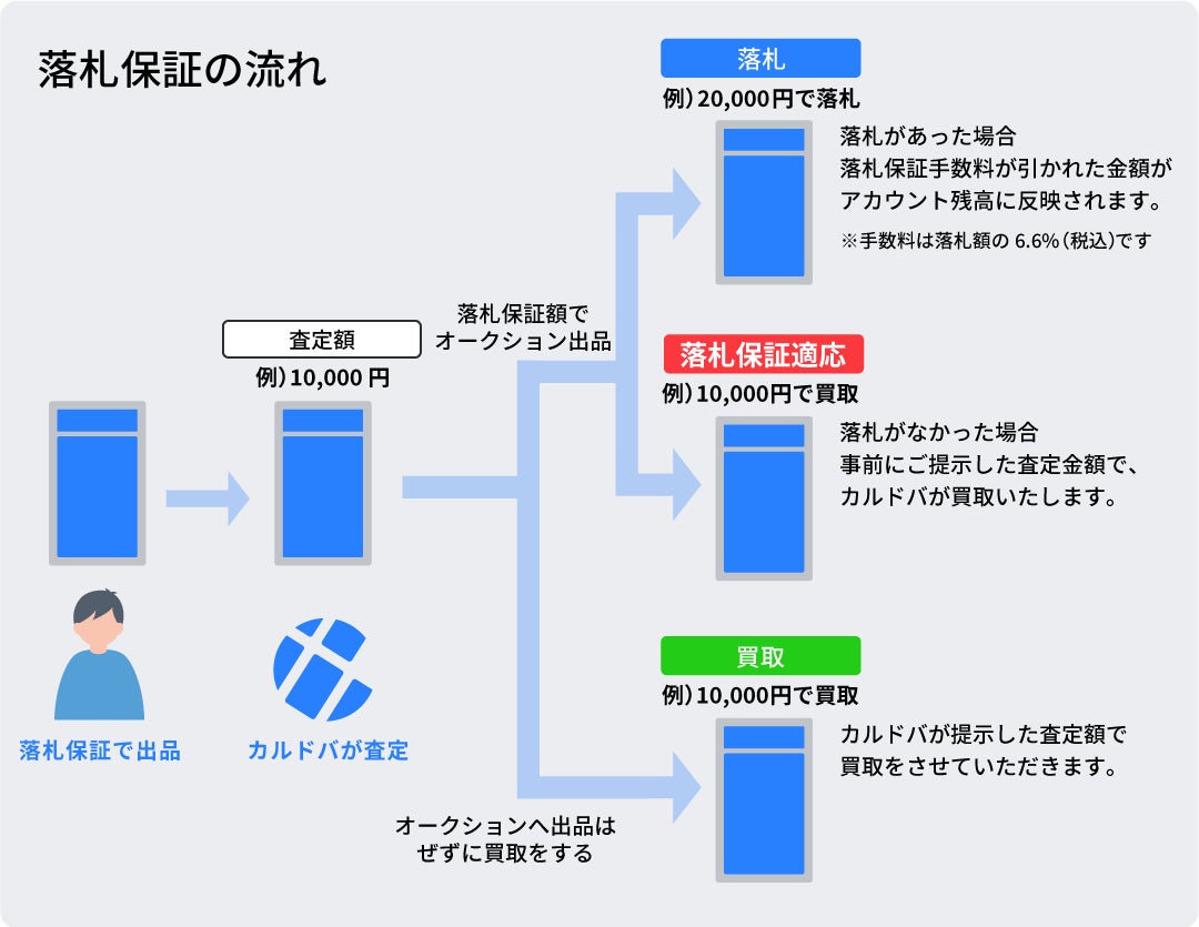 落札保証とは落札されなかった商品をユーザーに代わってカルドバが買い取るサービスです。
