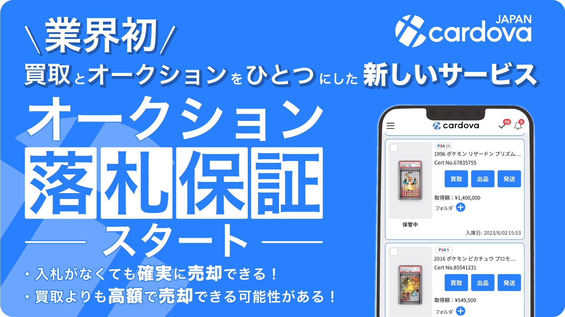鑑定済みトレカ取引サイト「カルドバ」のオークションがさらに便利に! オークションと買取を掛け合わせた「落札保証」がサービス開始!