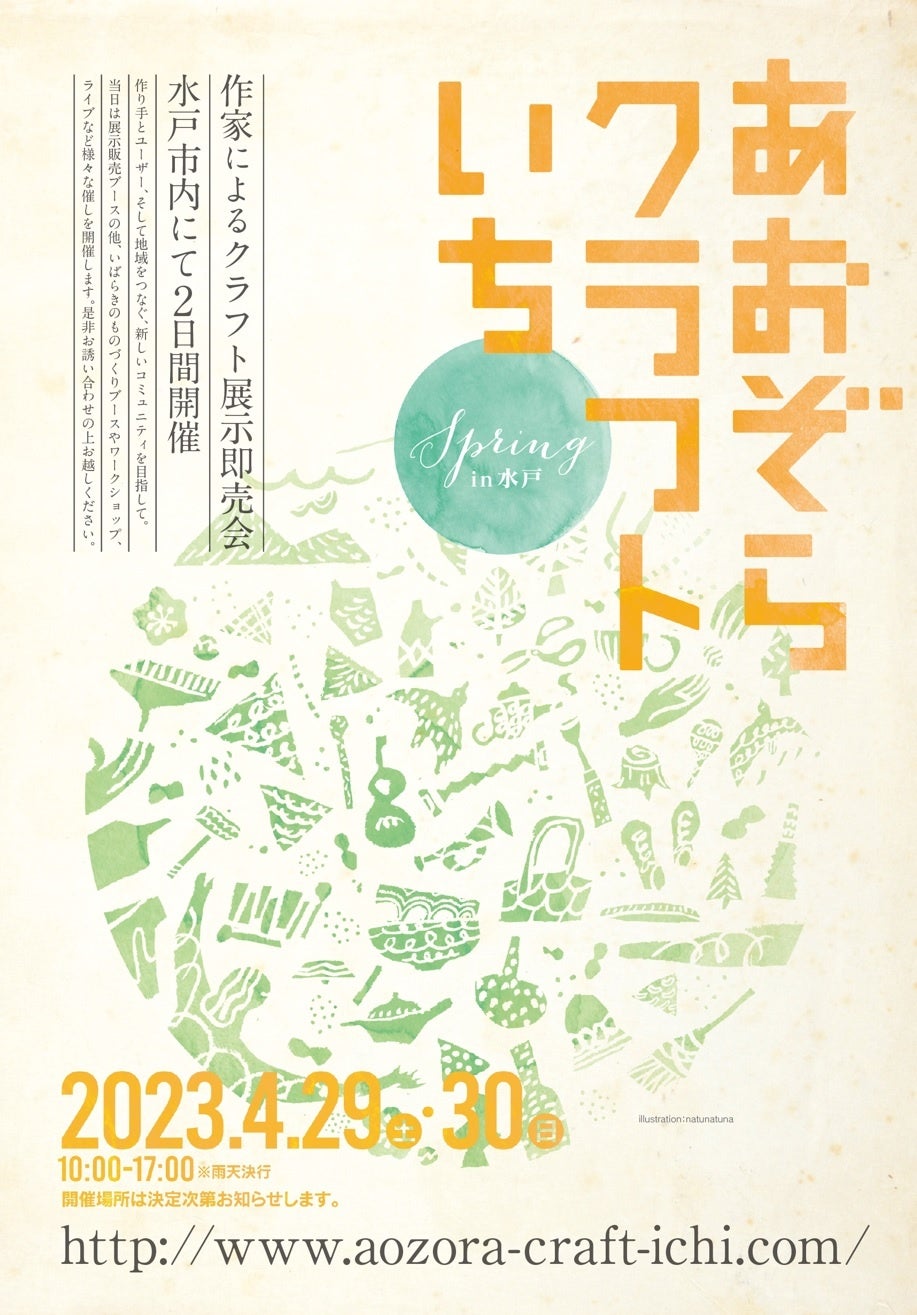 ワークショップを、2023年4月29日(土)、30日(日)に茨城県水戸市で行われる『あおぞらクラフトいち Spring2023』にて開催します。