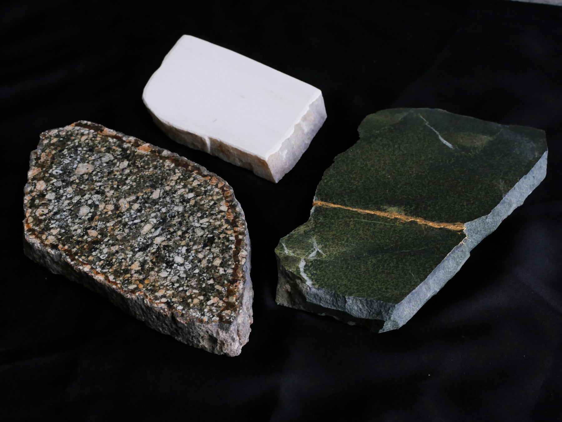 石を薄くスライスすることで、上面と底面は平らに、側面は石表面のゴツゴツを活かしたまま