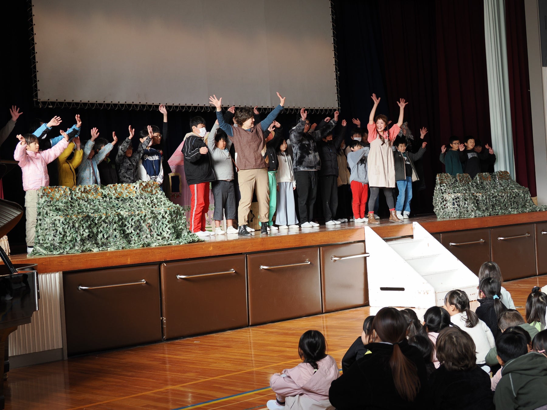 加えて、岡崎市の城南小学校で学校公演を実施することができました。特別支援学級の子どもたちや先生方にもご出演いただきました。