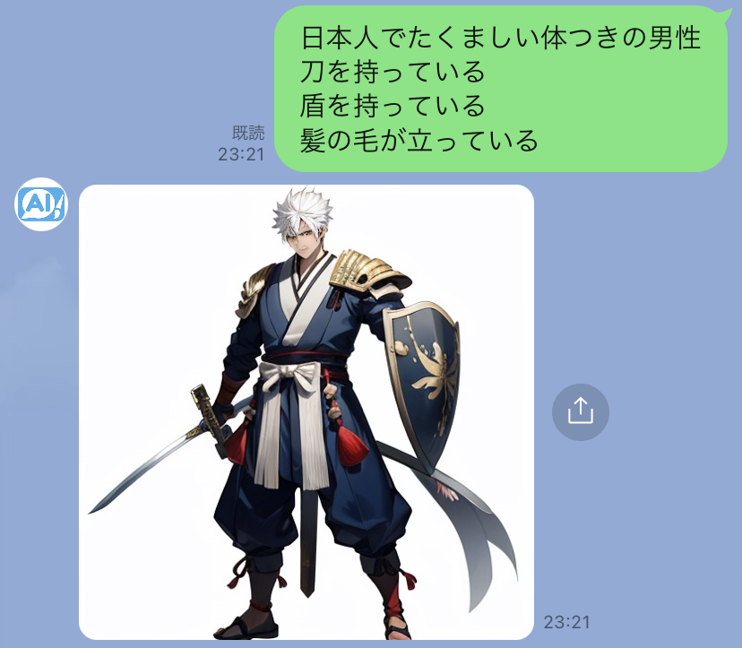 LINEのメッセージで作成してもらいたい画像を文章を入力するだけで画像が生成されます。あなた好みの画像を生成することが可能です。例えば、以下のような事例があります。