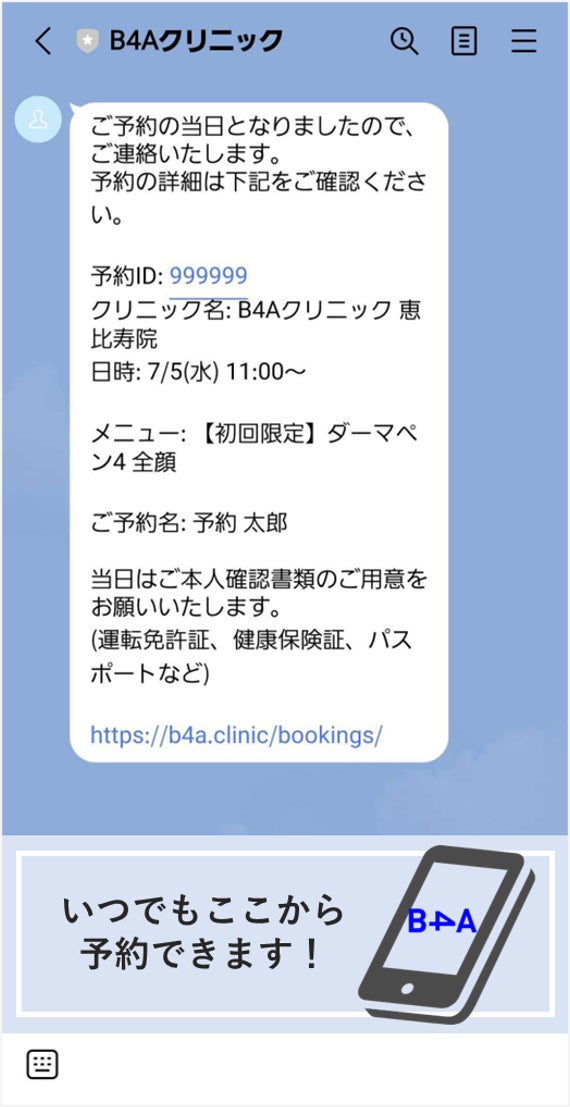 また、来院前のリマインドメッセージもLINEのトークで送信することができます。