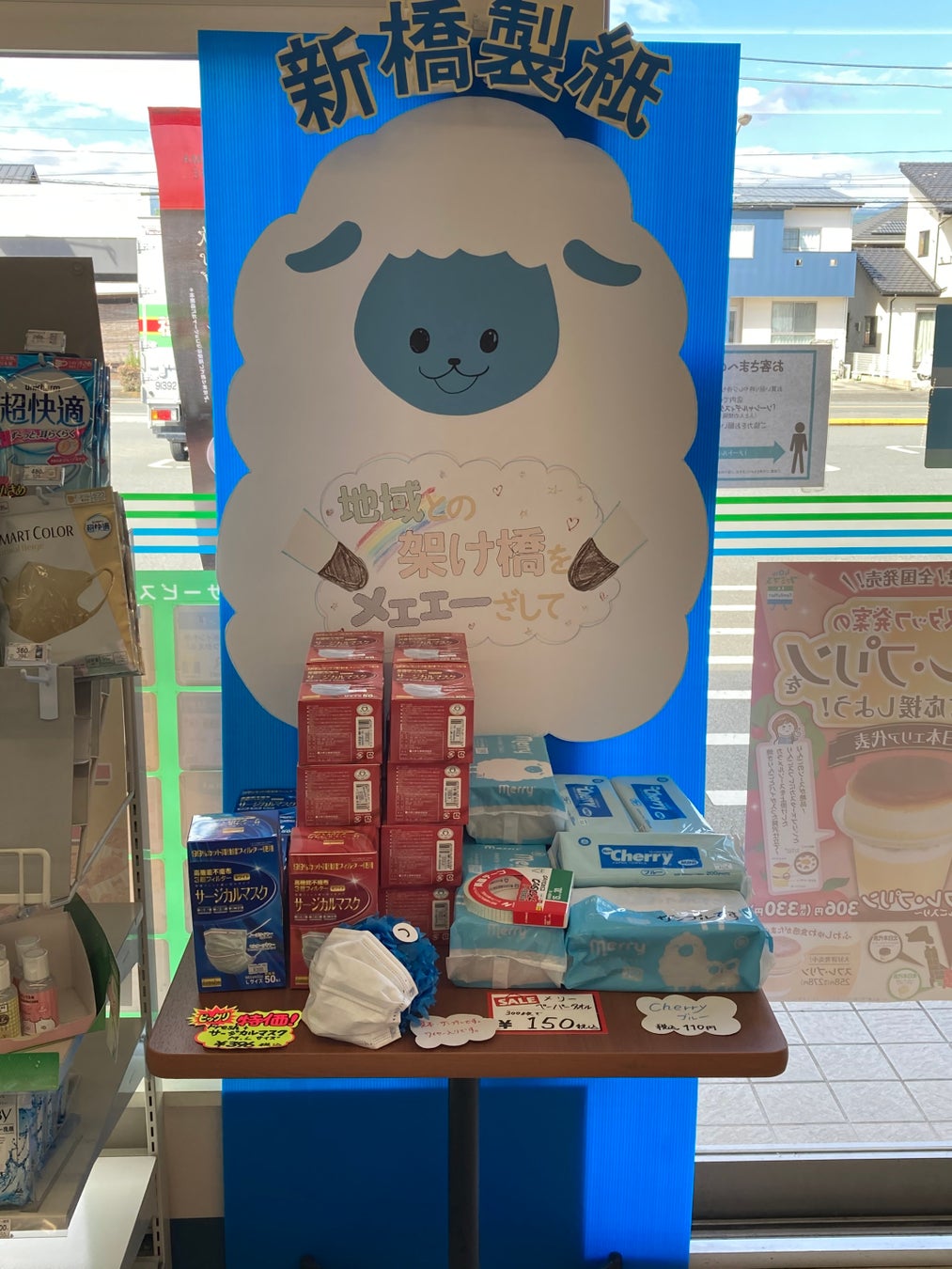宇佐美のメリー愛を語る上で避けては通れないのが、巨大ポップです。会社近くのコンビニエンスストアに弊社の商品を置いていただけることになった時、宇佐美がメリーのポップを手作りしました。担当外の仕事に進んで取り組んでくれました。
