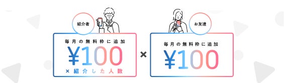 特典 無料枠が次の1年間、ご紹介1人あたり毎月100円増えます(※通常無料枠:6,500円)