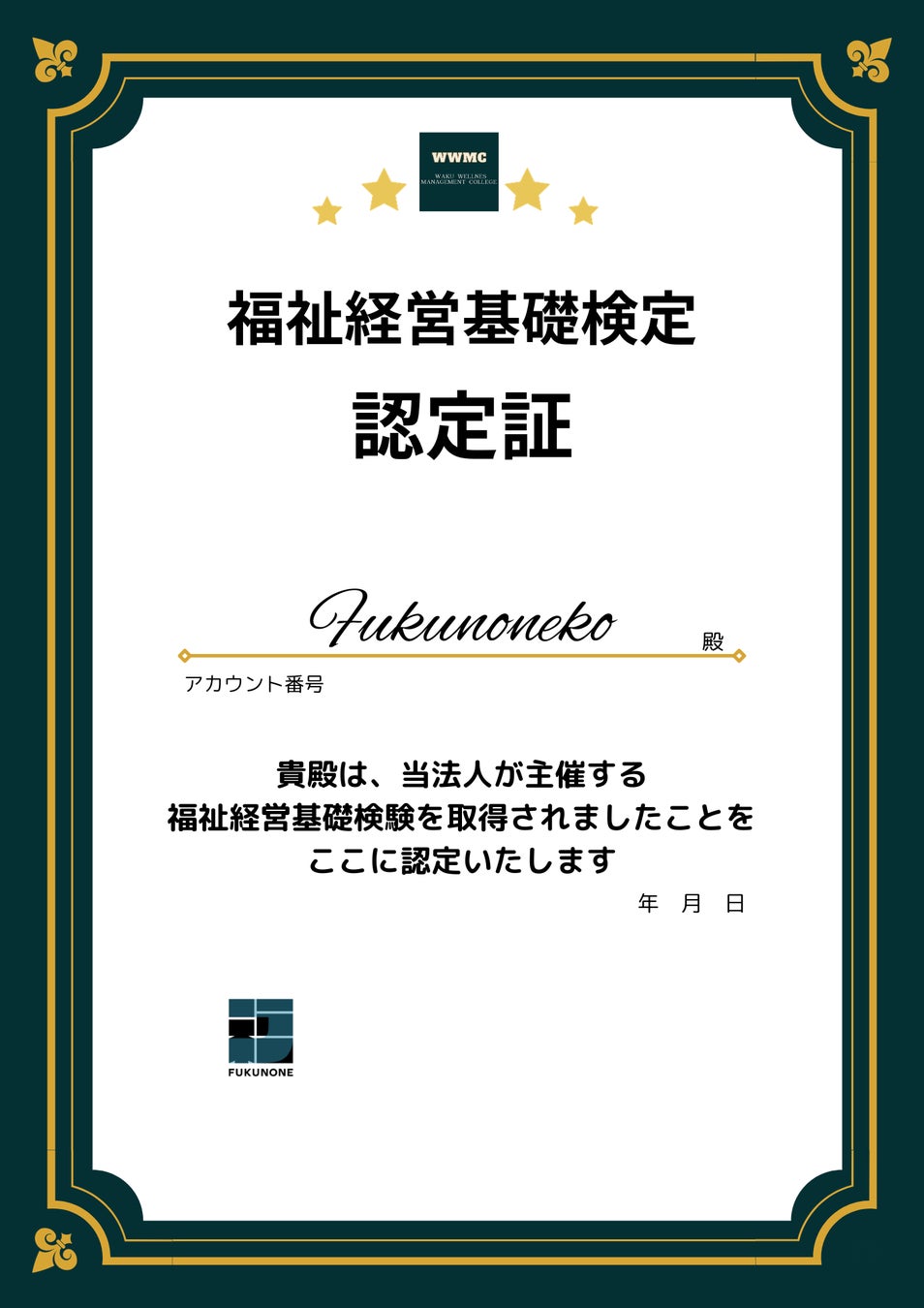 保育・介護・障がい福祉に関する経営知識の習得による、法人中核人財や次世代経営人財の育成を目的とした新資格「福祉経営基礎検定」(2024年1月創設)の第一号認定者が誕生!