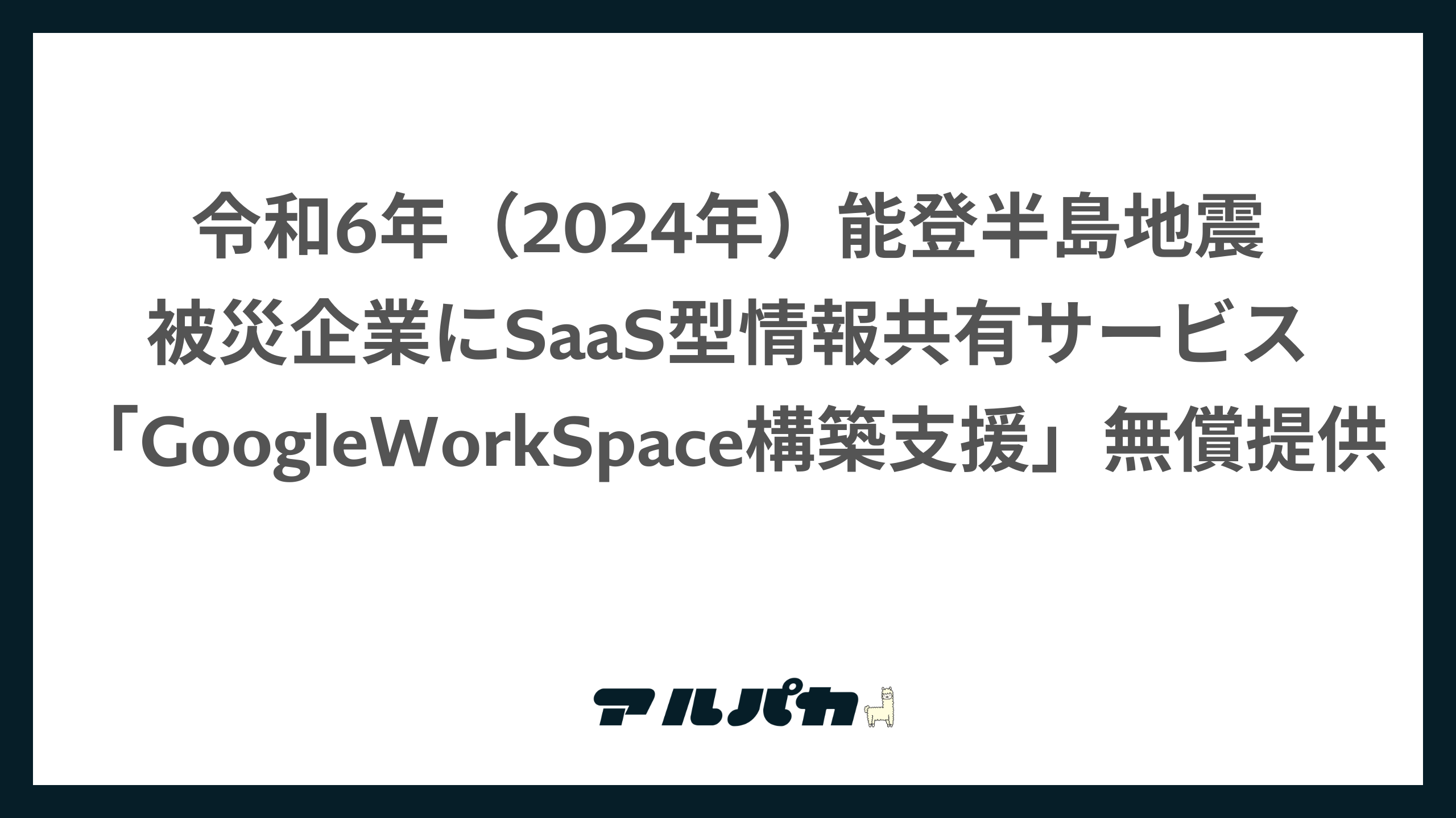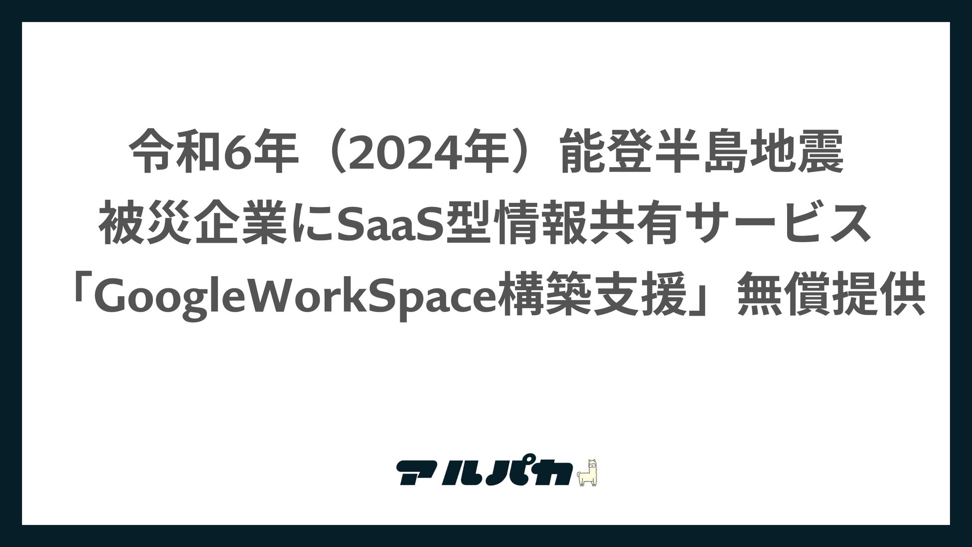 株式会社アルパカは、能登半島地震により被災した企業の業務継続を支援するため、SaaS型情報共有サービス「GoogleWorkspace構築支援」を無償で提供します。