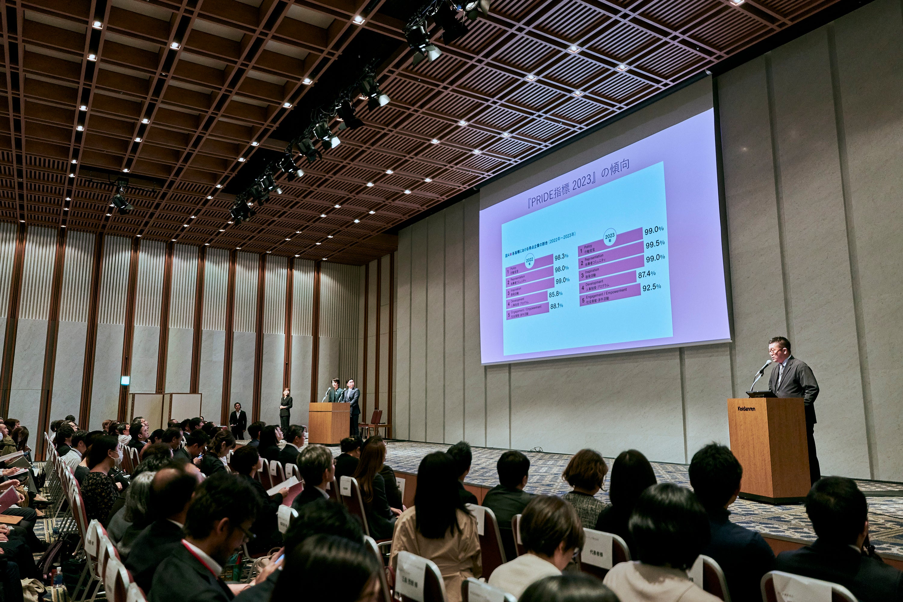今年は「企業から変える。〜いまこそ、ポジティブな声の可視化を〜」をテーマに開催。職場でのLGBTQ+に関する取り組み評価指標『PRIDE指標2023』認定企業の発表・表彰と、企業経営者によるアライネットワークの設立を発表しました。