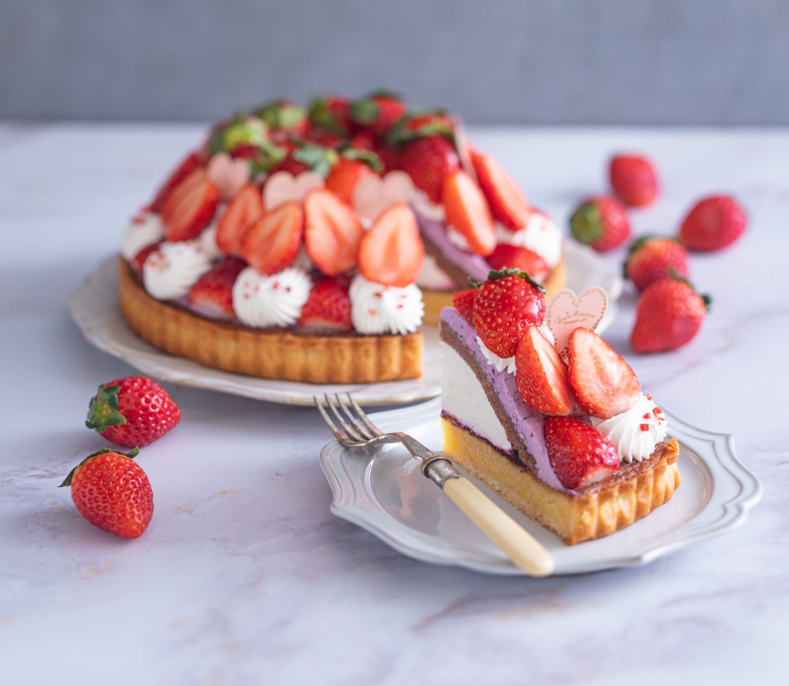 愛知県産イチゴ「ゆめのか」を使用。華やかな香りと、甘みと酸味のバランスがすっきりとした味わいが特長です。なめらかなカシスフロマージュクリームとカシスジャムを合わせ、甘酸っぱいハーモニーが楽しめる春らしいタルト。