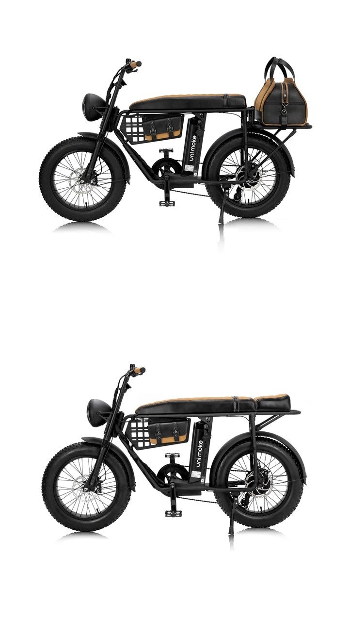 このコラボレーションでは、上質なブラックのベジタブルタンニンレザーとTimberlandのクラシックなイエローブーツのヌバックレザーを組み合わせた、2種類のバッグも新たに登場します。一つはUnimokeのリアラックにしっかりと固定できるレザートラベルバッグ。十分な収納力を備え、取り外し可能なジャカードストラップ付きで、手持ち、肩掛け、クロスボディ、リアラックへの固定と、4通りの使い方が可能です。もう一つは、バイクのフレームに取り付けられるバックルと取り外し可能なストラップが付いたレザースクエアバッグで、日常使いとしても、バイク用サイドバッグとしても使える汎用性の高いアイテムです。