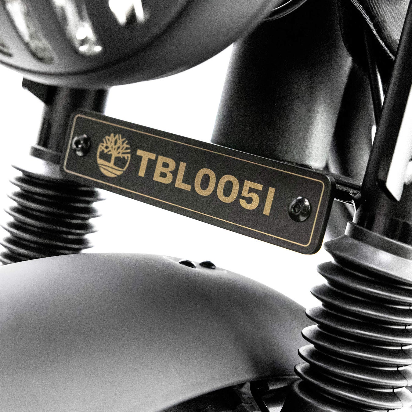 Timberlandの創業51周年にちなんで全世界51台の限定販売となります。バイクのフレームには、「TBL0001」から「TBL0051」までのシリアルナンバーが刻印された専用のナンバープレートが取り付けられており、特別仕様のモデルとなります。