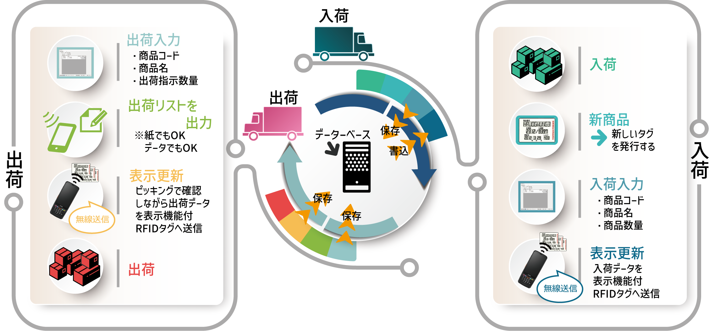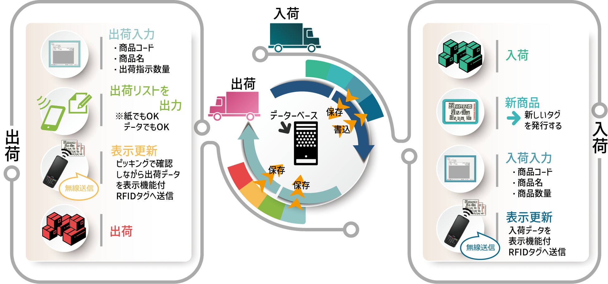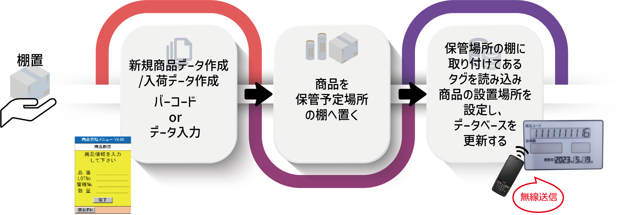 ※表示機能付RFIDタグを介してサーバーと繋がるため、簡単に在庫数等を管理できます。