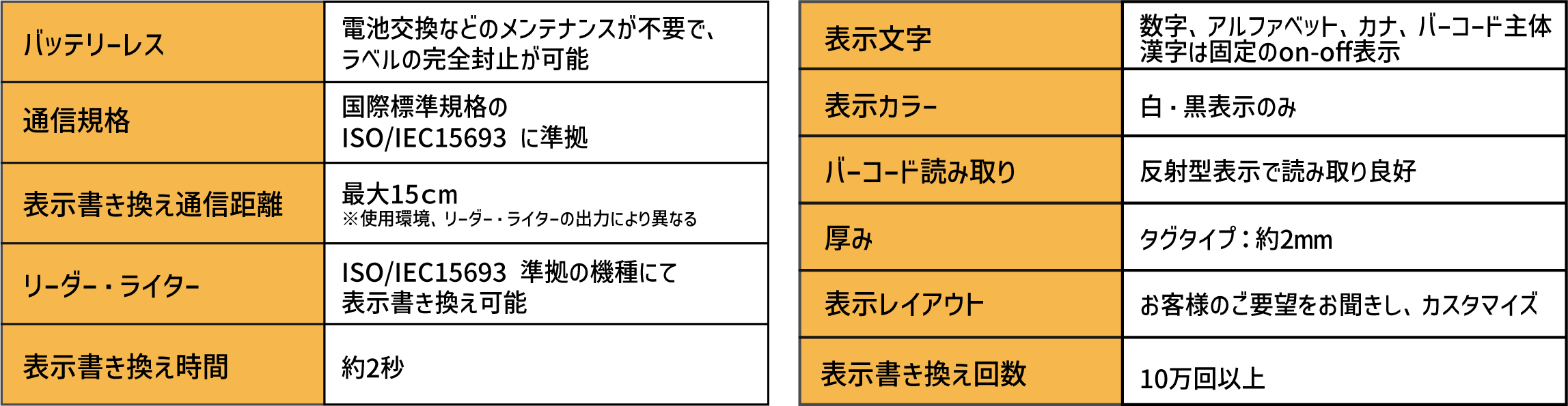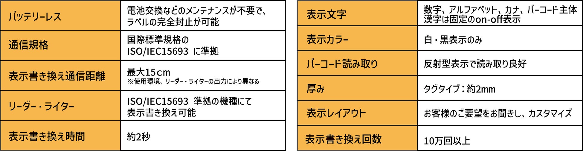 表示機能付RFIDタグの特性として