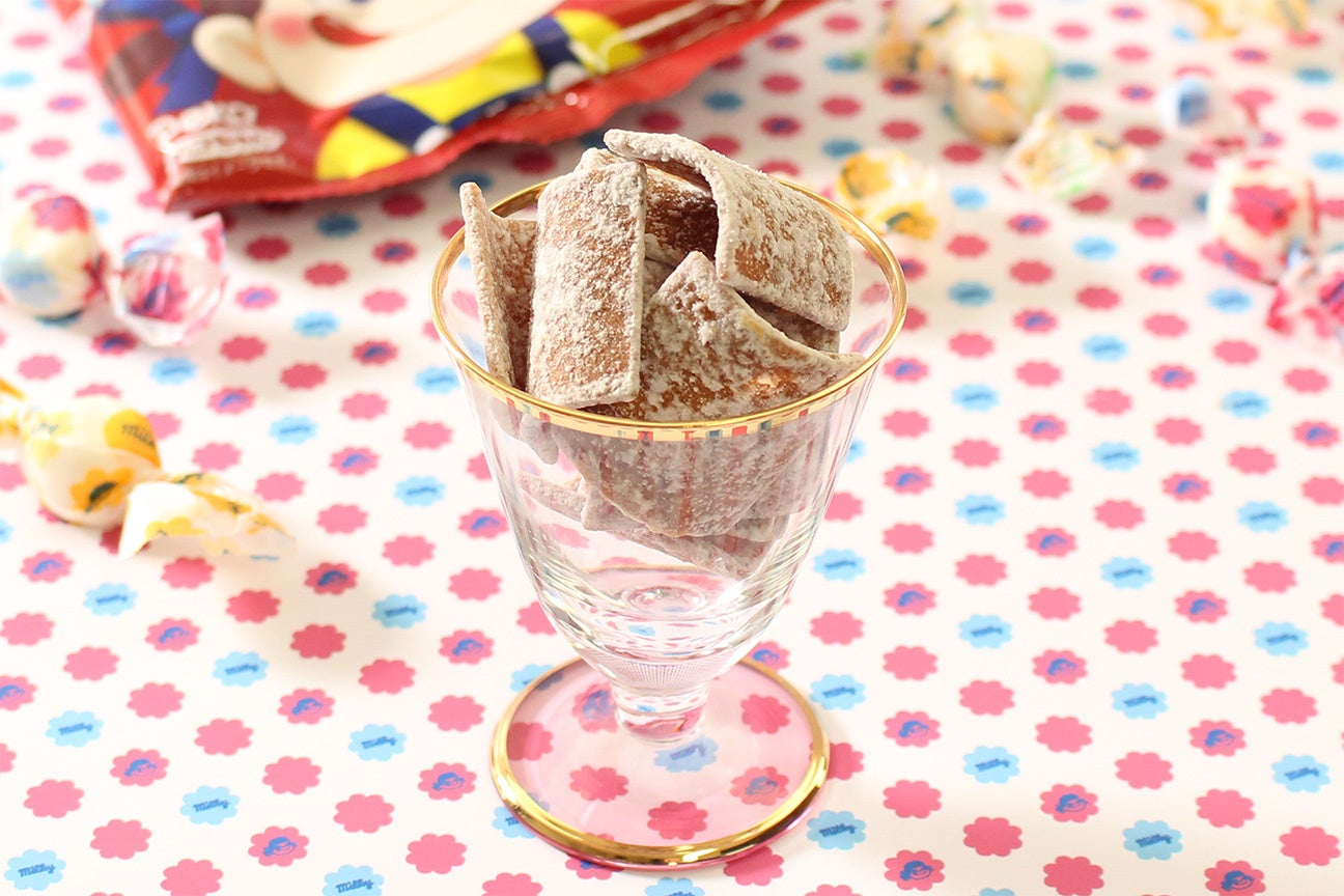 「不二家ミルキー」の原料でもある練乳の甘い香りが袋を開けた瞬間から広がり、ほんのり香るニッキと絶妙なミルキーの甘い味が子どもから大人まで楽しめます。