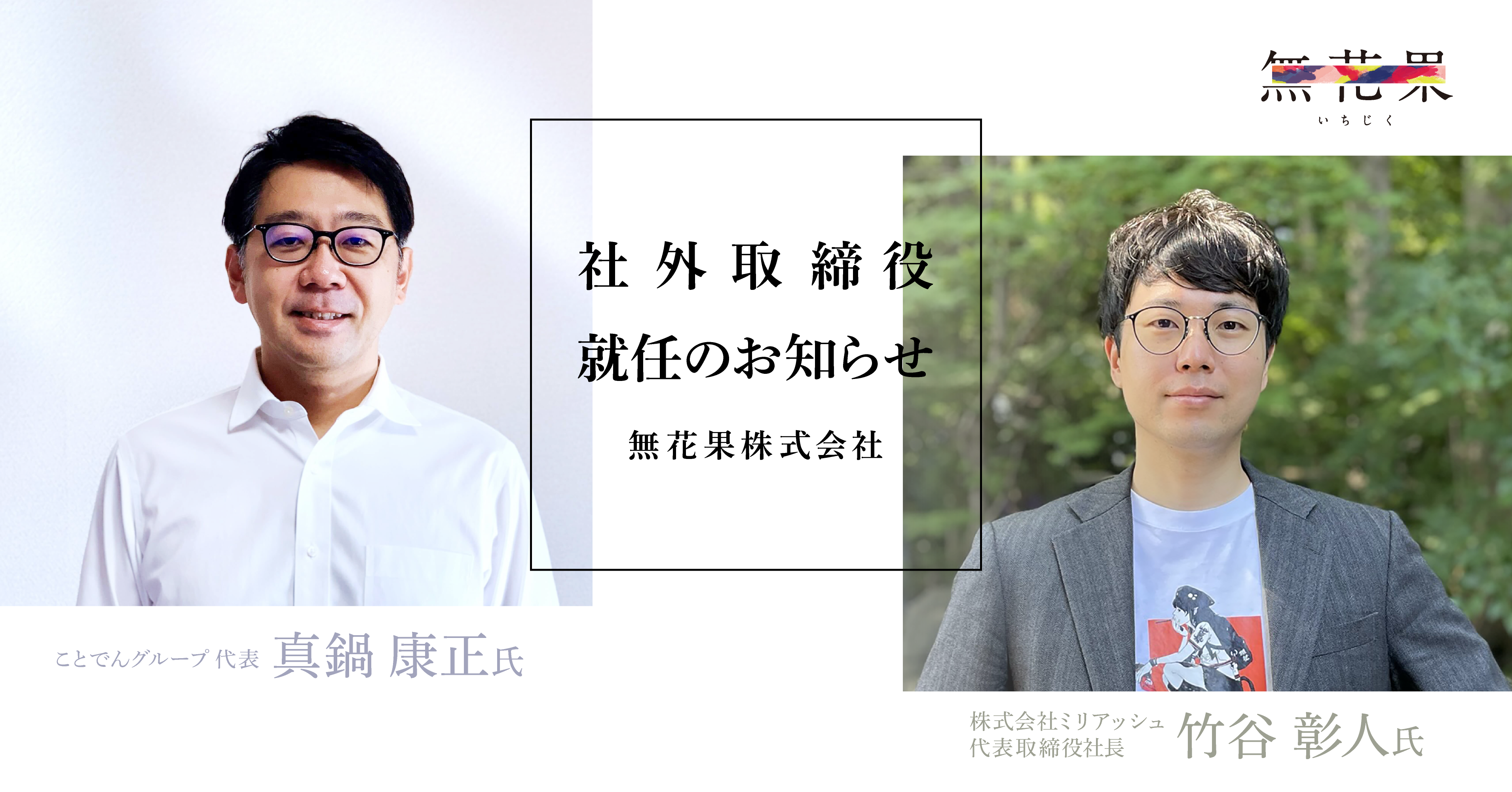 無花果株式会社、社外取締役に真鍋 康正氏、竹谷 彰人氏が就任。