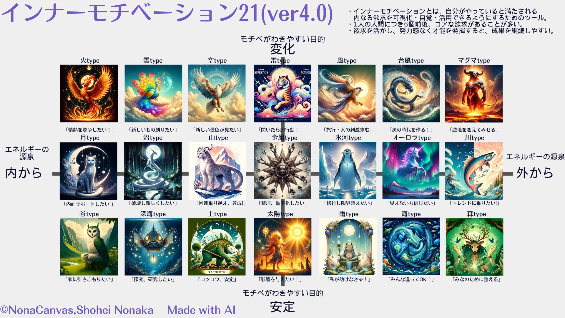 株式会社NonaCanvas(本社:東京都千代田区、代表取締役:野中 祥平)は、起業家とインフルエンサーに特化した性格診断ツール「インナーモチベーション診断」の正式リリースを開始いたしました。本診断は、4月のベータ版提供以降、30人の起業家・インフルエンサーへのモニタープログラムを通じて得られたデータとフィードバックを元に制作されました。