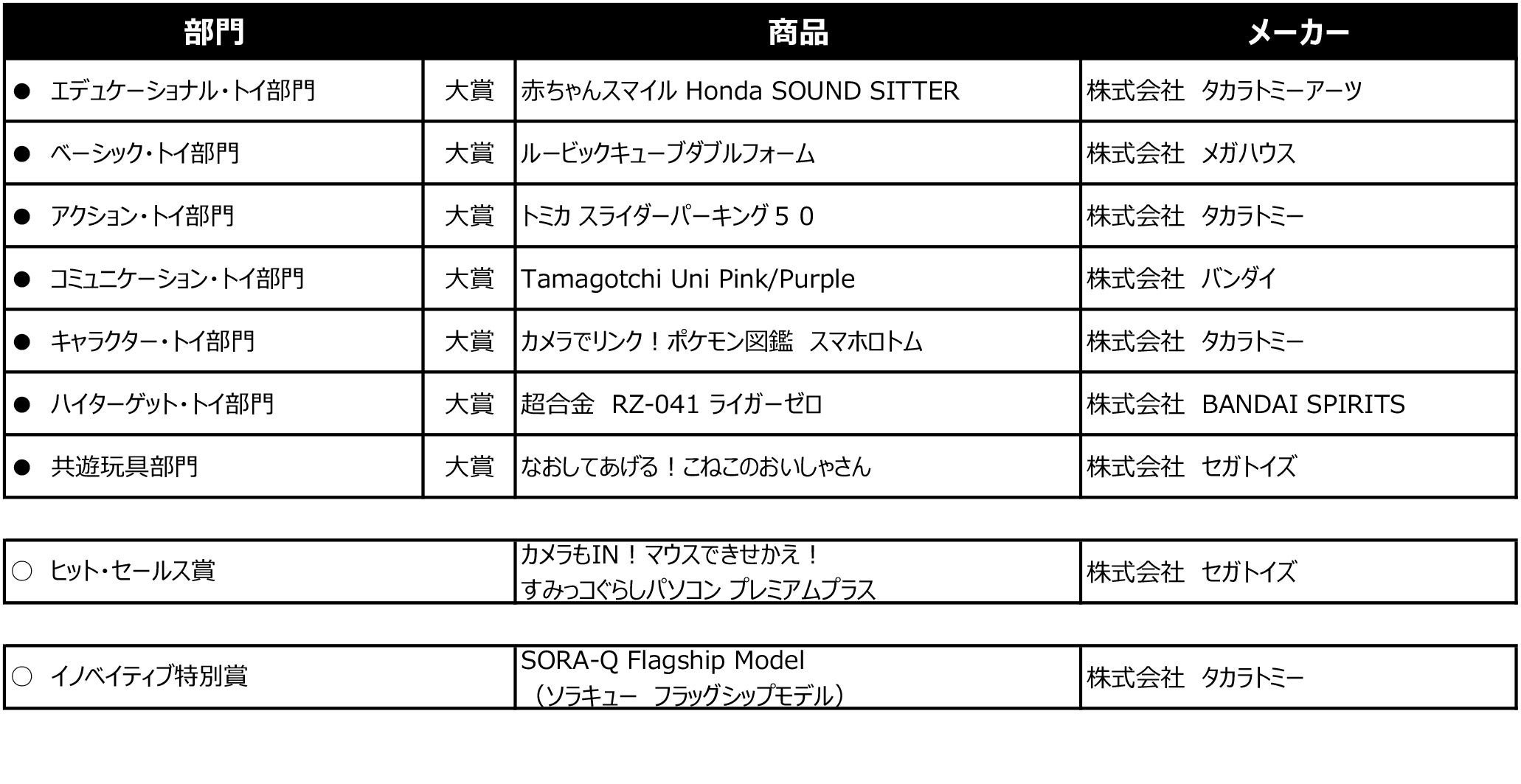 日本おもちゃ大賞では、上記の他、特に玩具業界に貢献し顕彰に値する商品があった場合