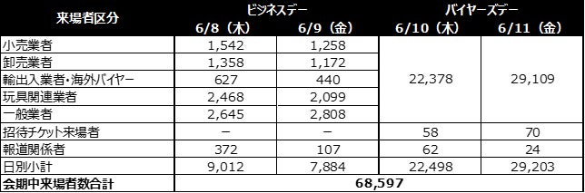 昨年に引き続き、パブリックデーは有料開催(中学生以下入場無料)となり、入場チケット[高校生以上1,800円]/早割入場チケット[高校生以上1,600円](すべて税込・デジタル商品券「こども商品券e-Gift」 300円分含む)は本日から発売します。当日は最新玩具やトレンド商品を含む、各出展社のさまざまなおもちゃの展示をお楽しみいただけます。今年も「コロコロ魂フェスティバル」との併催となり、さらに盛りだくさんのコンテンツを楽しむことができます。前半2日間をバイヤーズデー、後半2日間をパブリックデーとして、4日間で約8万人の来場を見込んでおります。