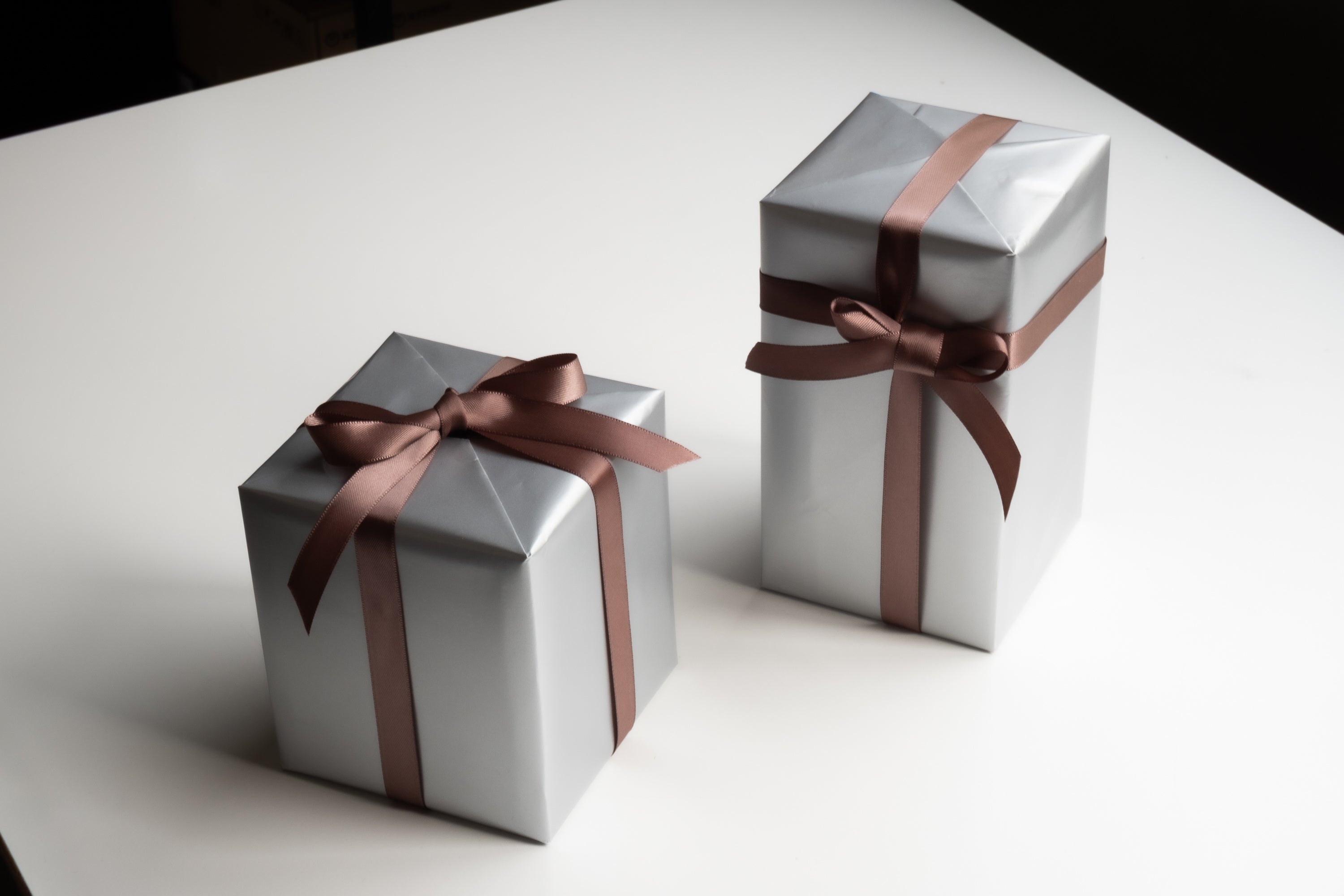 無料のラッピングサービスを開始いたしました。ご希望の場合には、注文ページの備考欄にその旨をご入力ください。シルバー無地の包装紙に茶色のリボンをおかけいたします。