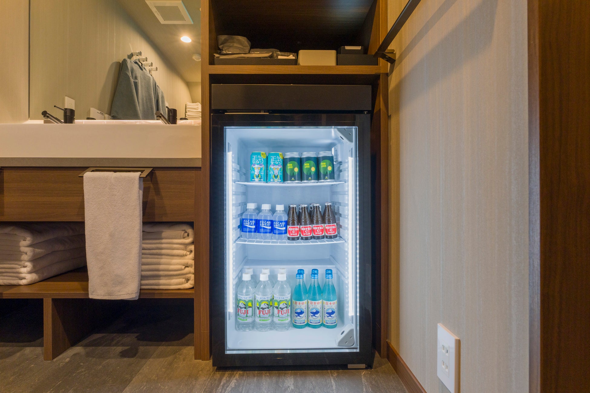 「LOCA THE CLASS.」特別室限定で、サウナ利用時にあると嬉しいドリンクの販売機やサウナポンチョ、サウナウェアをご用意。完全プライベート空間でサウナを存分に満喫できるような工夫を詰め込んでいます。