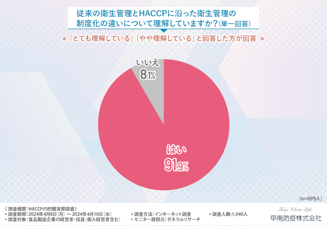 9割以上の方が従来の衛生管理とHACCPに沿った衛生管理の制度化の違いを理解していると回答!