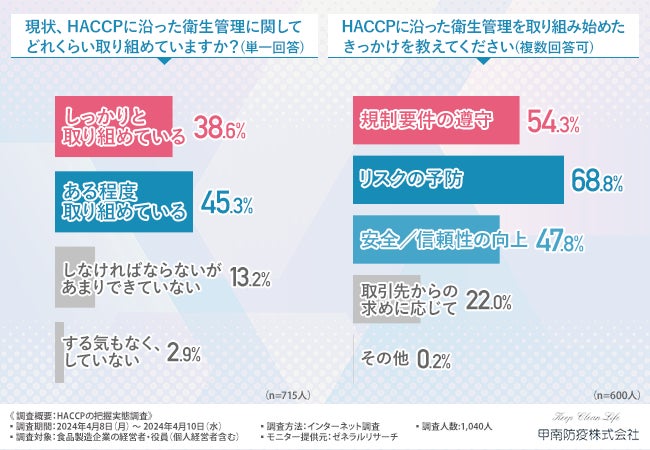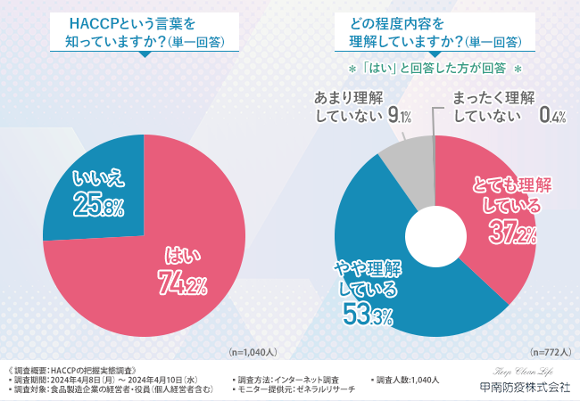 そこで今回、甲南防疫株式会社(https://konan-pca.com/)は、食品製造企業の経営者・役員(個人経営者含む)を対象に、「HACCPの把握実態調査」を実施しました。