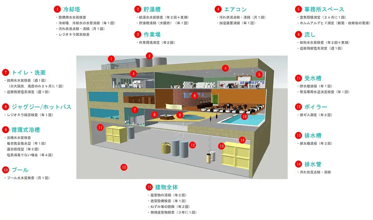 当社では、有害生物防除のみならず、水質検査や空気環境の測定等建築物衛生法に則った総合的な管理が可能です。