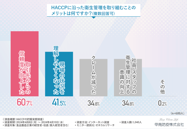 HACCPに沿った衛生管理のメリットは『取引先からの信頼度向上』『現場の状況が理解しやすい』